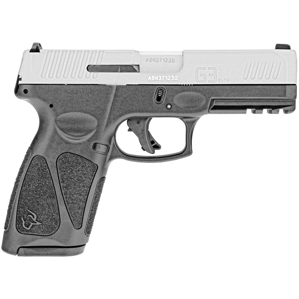 Taurus G3 9mm Luger Pistol 17 Rounds Black/Stainless. aurus Item Number: 1-G3B949 Semi-Automatic Pistol Single Action with Restrike Capability 9mm Luger 4" Stainless Steel Barrel (Matte Stainless Steel Finish) 17 Round Magazine Fixed Steel Front Sight Serrated Drift Adjustable Steel Rear Sight Picatinny Accessory Rail Loaded Chamber Indicator Manual Safety Striker Block Trigger Safety Full Size Frame Generous Stippling Patches on Grip Ergonomic Palm Swell Overall Length 7.28" Overall Height 5.20" Overall Width 1.20" Overall Weight 24.83 oz Stainless Steel Slide (Matte Stainless Finish) Polymer Frame (Black Finish)